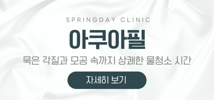 *아쿠아필 : 각질제거하며 수분을 동시에 공급하는 각질제거시술로, 1단계 AHA,2단계 BHA, 3단계 토닝으로 진행합니다.